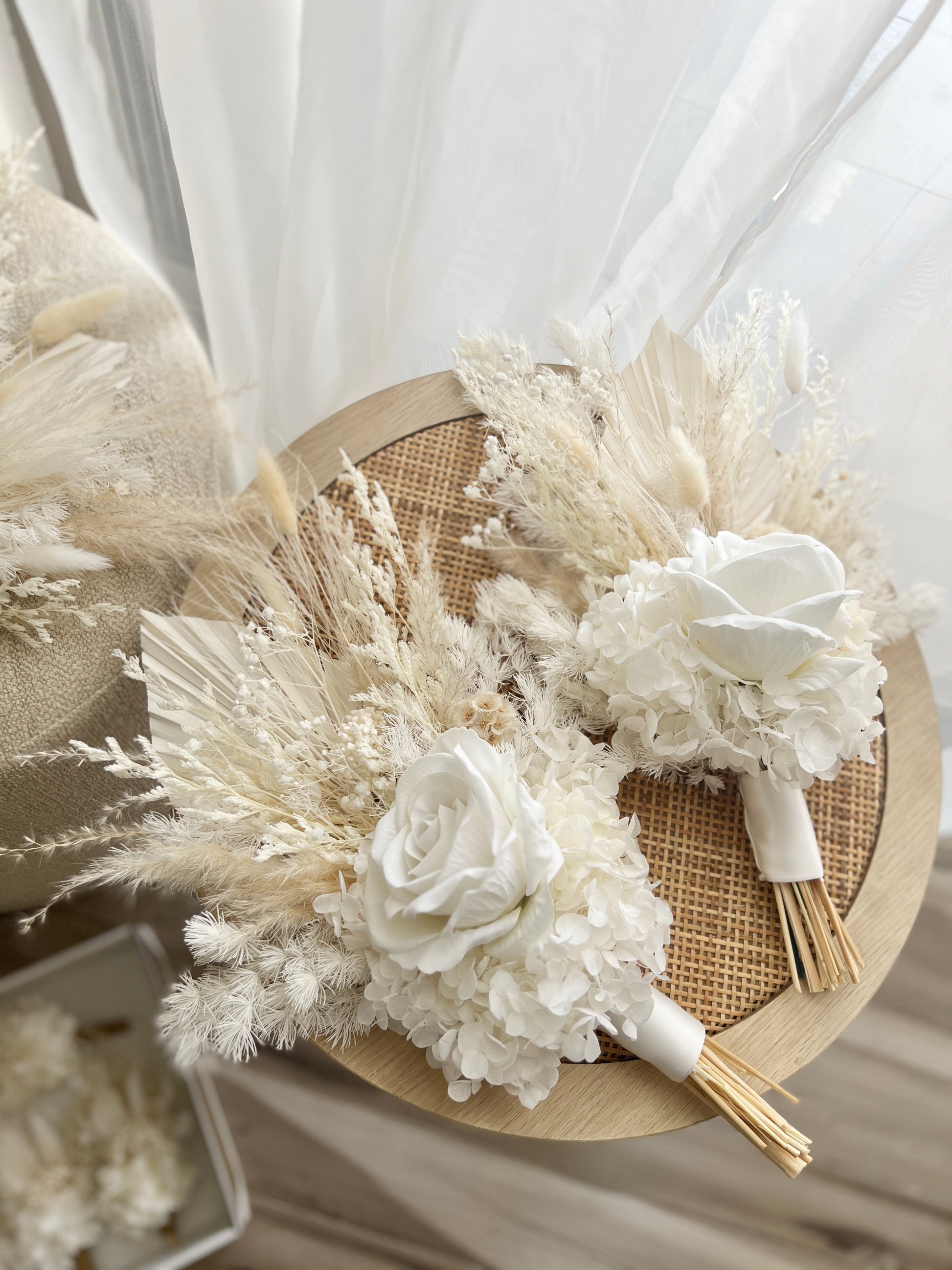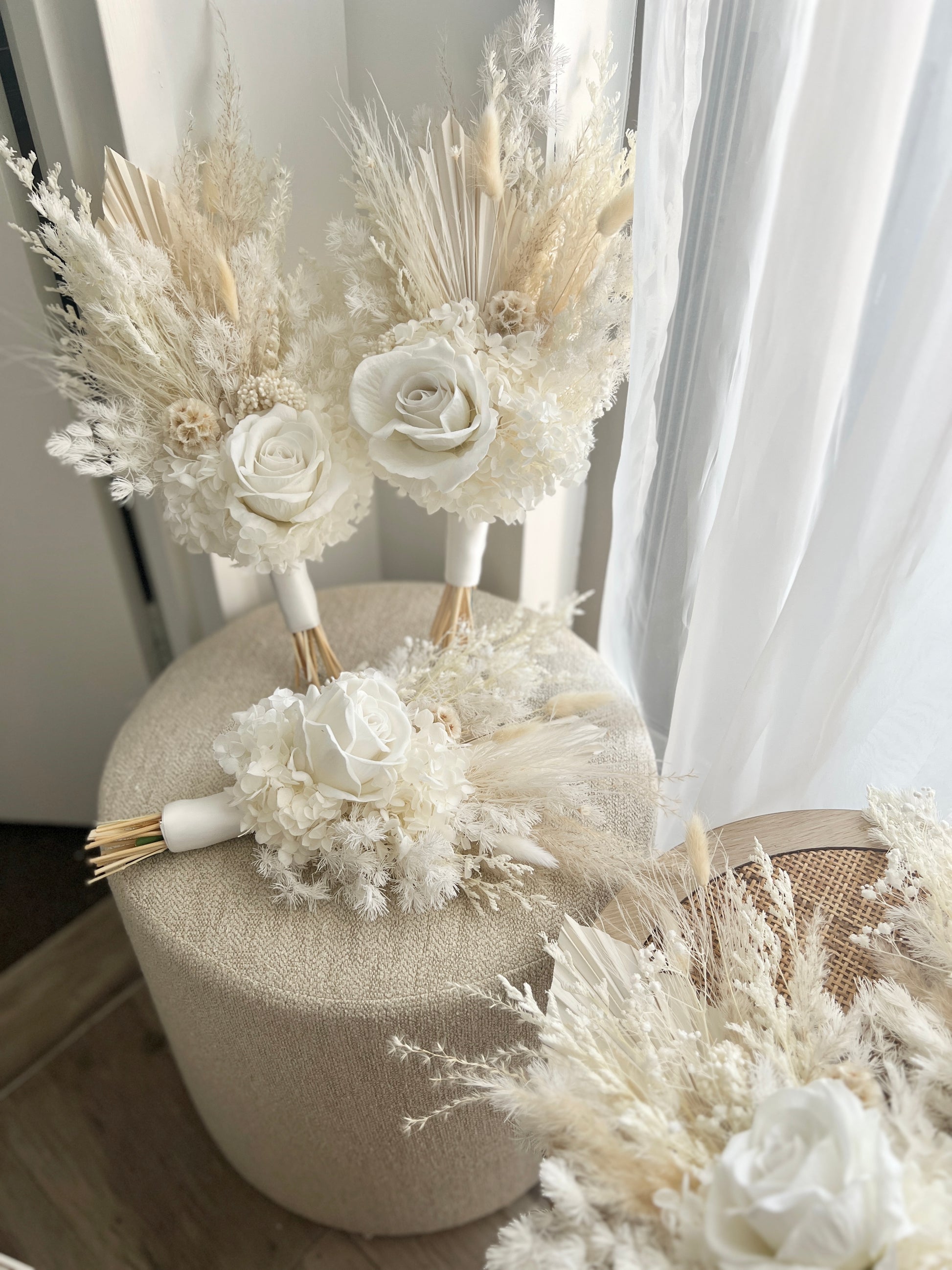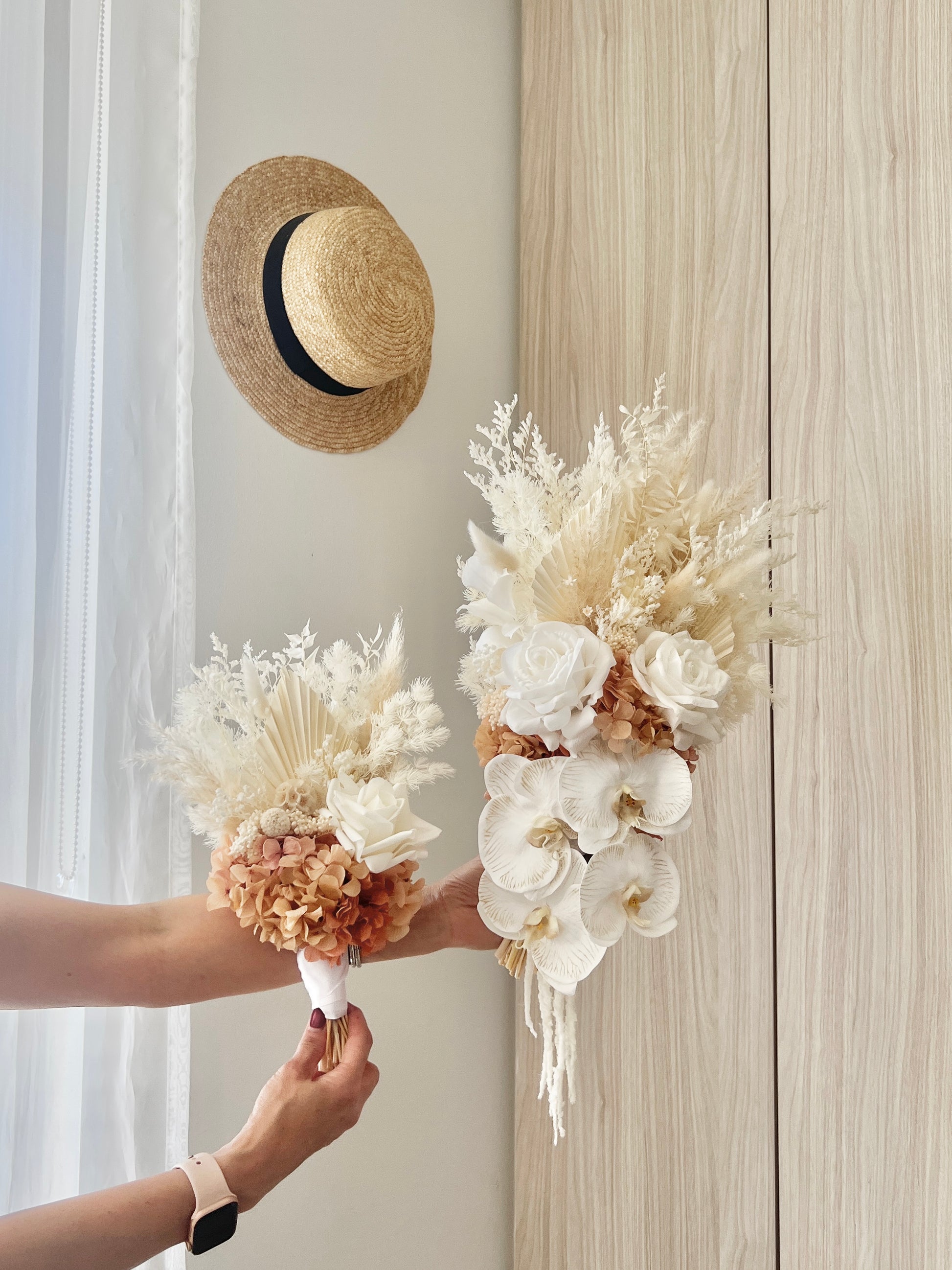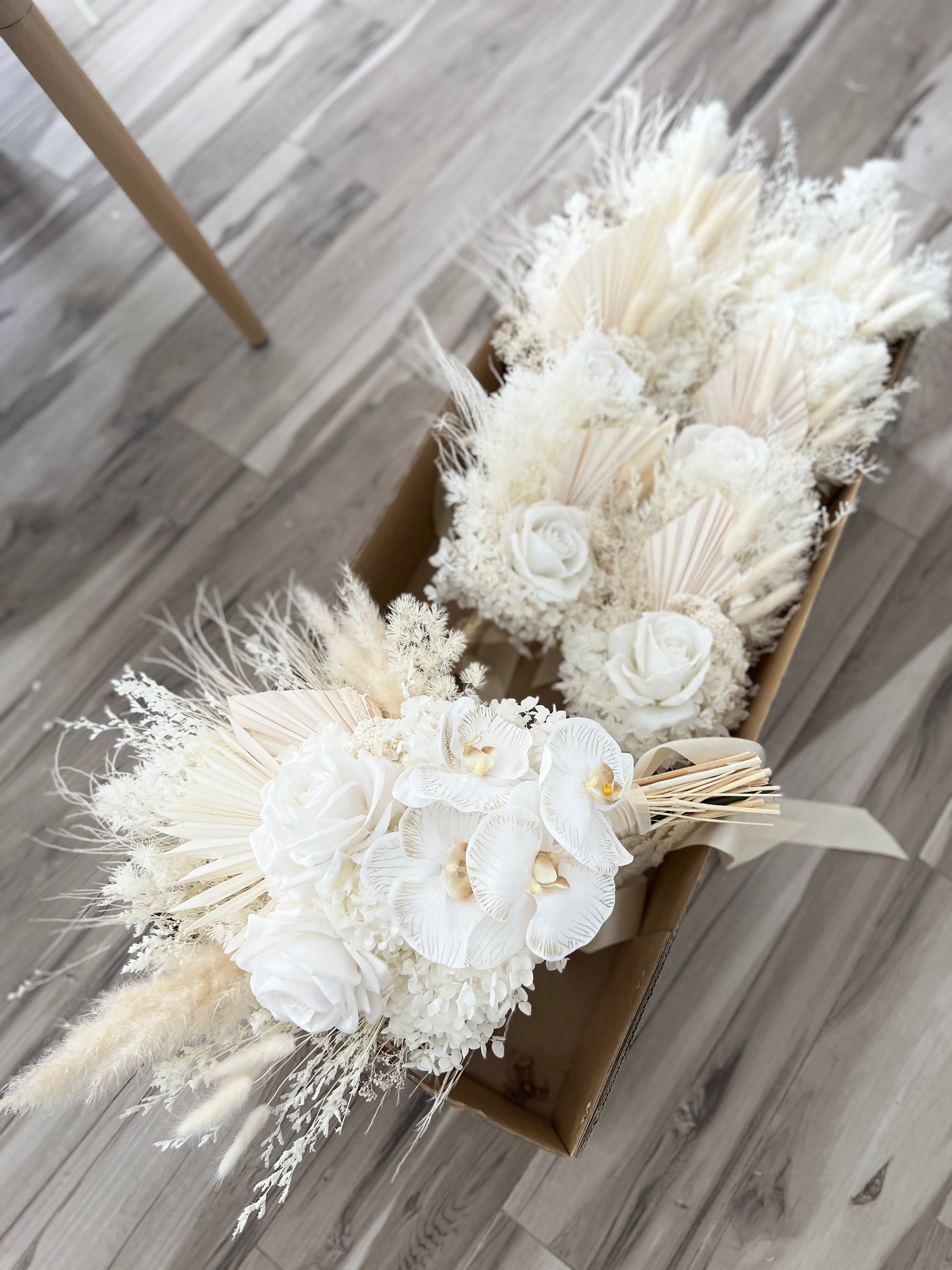 Dried & preserved florals used may include hydrangeas, ming fern, amaranthus, palms, ferns, bunny tails, fox tail, billy buttons, rice flower, nigella, million stars etc...